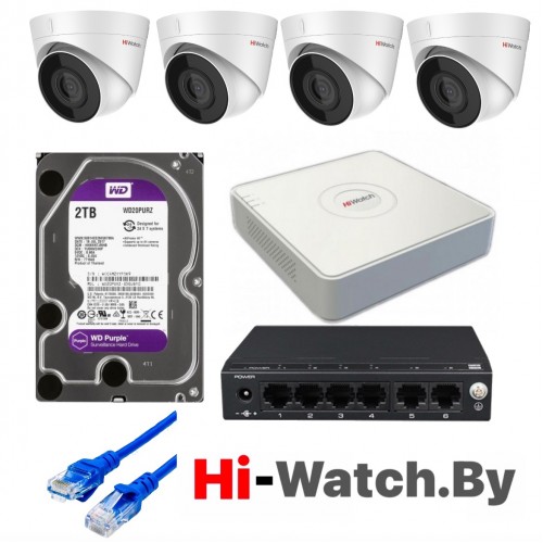 Комплект IP видеонаблюдения на 4 видеокамеры 2 МП HiWatch KIT-DS203-4